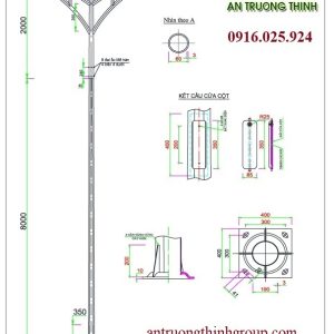 - Trụ đèn chiếu sáng cao áp bát giác 6m, 7m, 8m, 9m, 10m