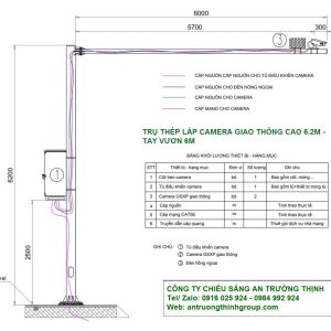 Hình Ảnh – Bản vẽ trụ thép lắp camera giao thông cao 6m – Tay vươn 2m, 3m, 4m
