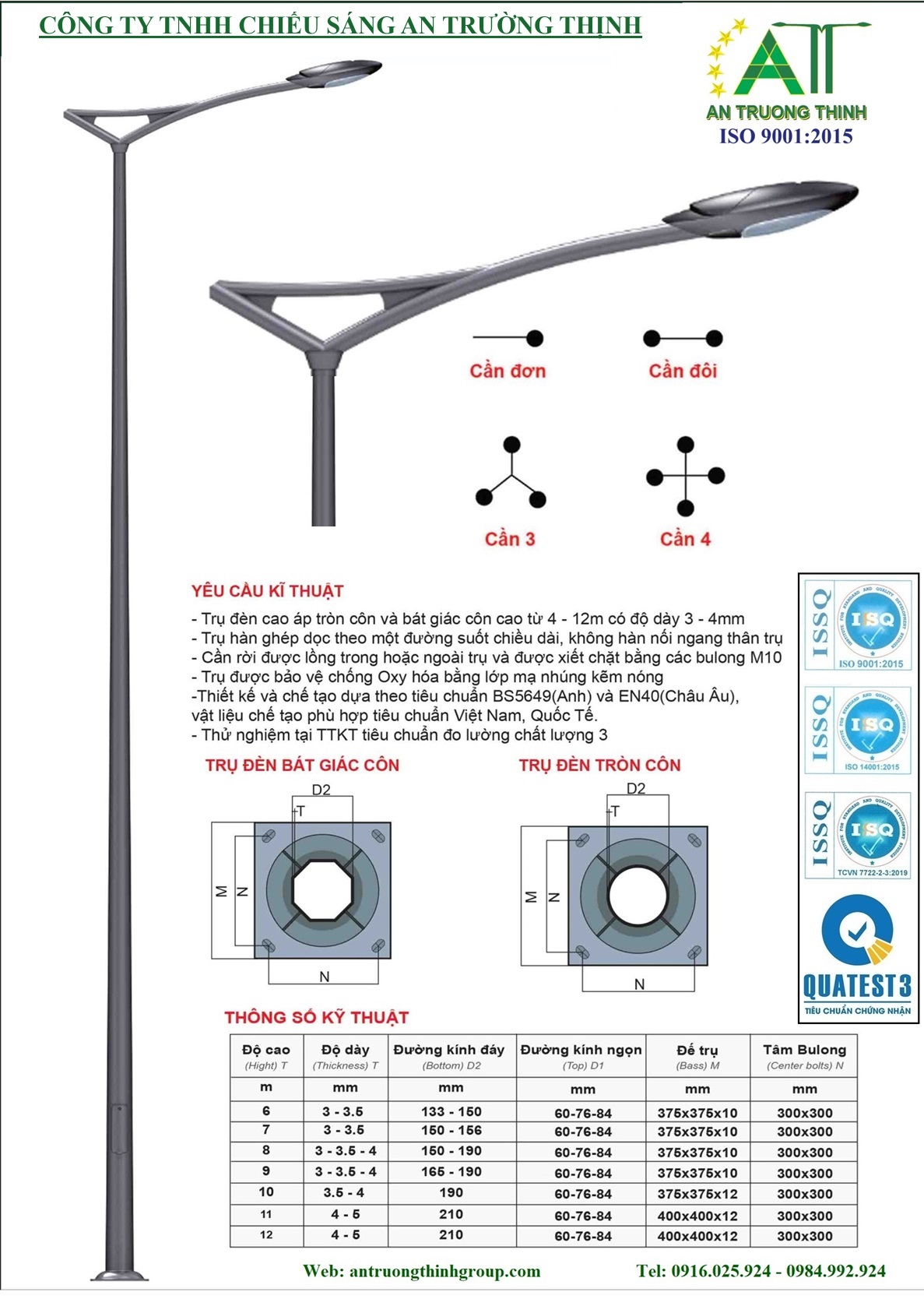 Chọn nhà sản xuất cung cấp Trụ đèn, cột đèn cao áp chiếu sáng đường phố cao 3m, 4m, 5m, 6m, 7m, 8m, 9m, 10m, 11m, 12m,… đến 50m: