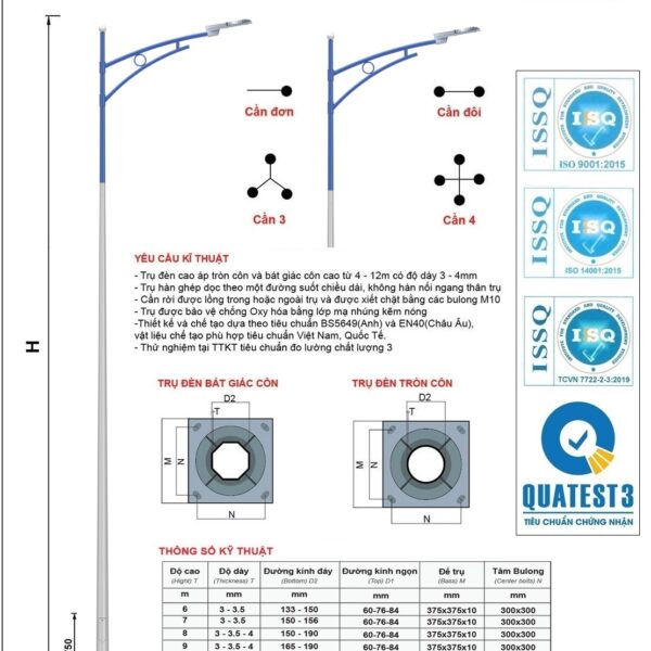 Hình Ảnh – Trụ Đèn Cao Áp Côn Tròn, Bát Giác 4m, 5m, 6m, 7m, 8m, 9m, 10m ATT-C55