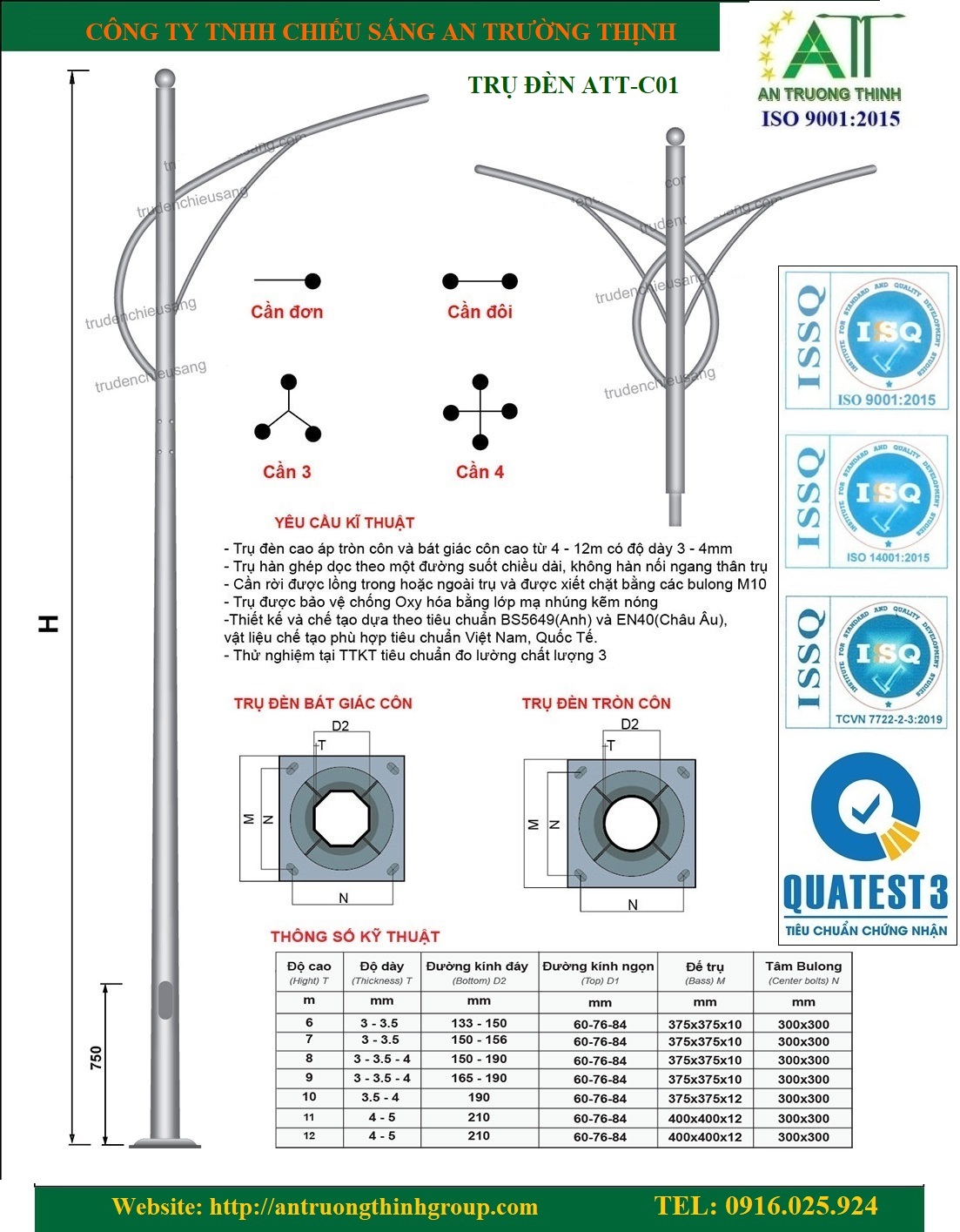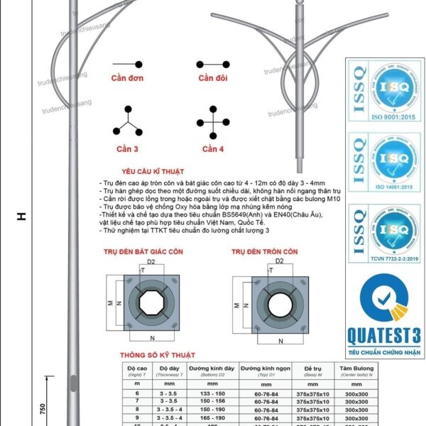 Công Ty Chiếu Sáng An Trường Thịnh Đơn Vị Chuyên Sản Xuất Cung Cấp Trụ Đèn Cao Áp, Cột Đèn Chiếu Sáng Đường Phố Cao 4m, 5m, 6m, 7m, 8m, 9m, 10m, 11m, 12m Đến 40m, Trụ Đèn Đạt Tiêu Chuẩn Chất Lượng ISO 9001:2015, TCVN,…